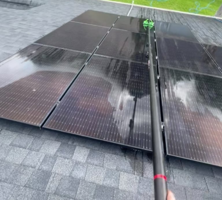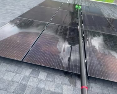 We offer specialized solar panel cleaning using deionized water, which eliminates streaks and mineral deposits without leaving residue. Clean panels improve efficiency and maximize energy output, while our trained team handles your system safely and effectively.